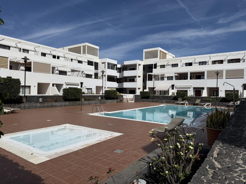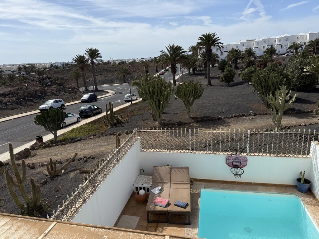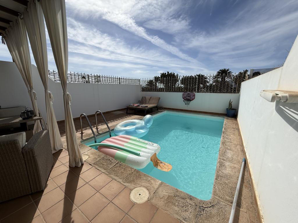 La zona exterior es un verdadero refugio de tranquilidad, con una piscina privada, una zona chill out y un comedor exterior perfecto para disfrutar del clima de Lanzarote durante todo el año. El entorno es muy silencioso y la comunidad, cerrada y cuidada, transmite sensación de privacidad y bienestar.