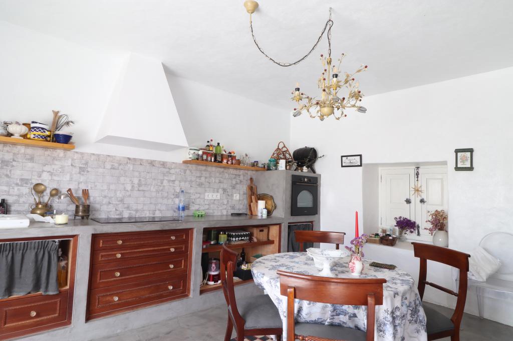 Desde la casa se pueden apreciar hermosas vistas panorámicas a las montañas. La vivienda dispone de cuatro dormitorios dobles, uno de ellos con baño en suite, y dos baños adicionales. La cocina es independiente y espaciosa, equipada con electrodomésticos y con espacio de comedor. También cuenta con despensa, solana y una sala polivalente, actualmente utilizada como sala de yoga. Además, dispone de un garaje.
