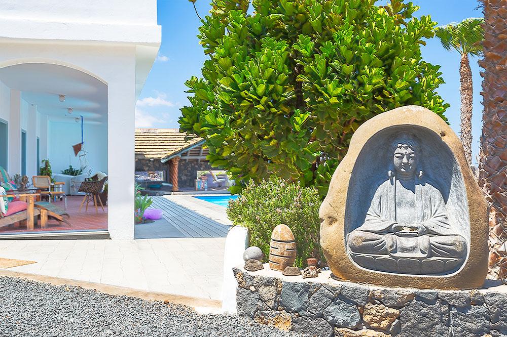 El exterior de la propiedad ha sido cuidadosamente diseñado para disfrutar al máximo del privilegiado clima de Lanzarote y de las estupendas vistas al paisaje natural, creando una experiencia exterior única donde confort y naturaleza se integran de forma armoniosa. Sus jardines paisajísticos, muy bien cuidados, acogen varias terrazas y zonas de descanso que invitan a relajarse. Entre sus espacios destacan un fabuloso jacuzzi, acogedoras áreas chill-out, así como un fantástico comedor al aire libre perfecto para disfrutar de buenos momentos al aire libre.